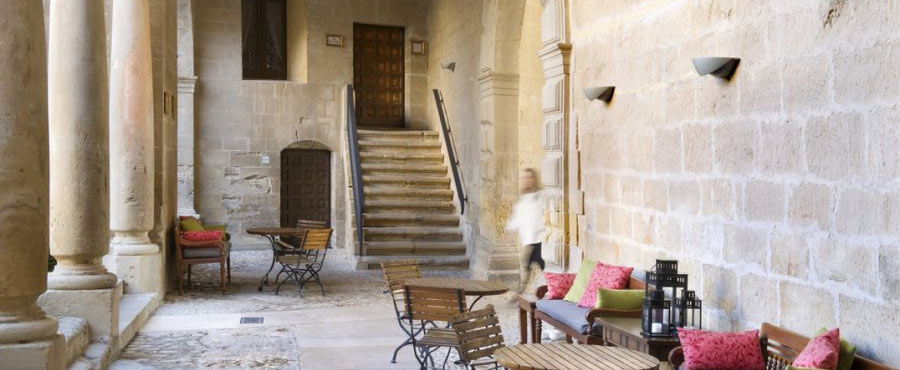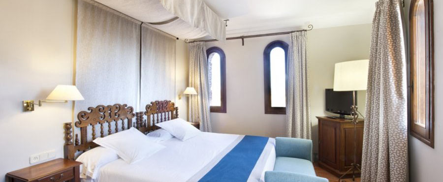 The interior features Gothic murals, a Plateresque sepulchre and baroque facade decorated with red, ochre and green shades as well as oak beams. There is also a peaceful garden area. The hotel provides a large number of excursions and adventure sports activities.