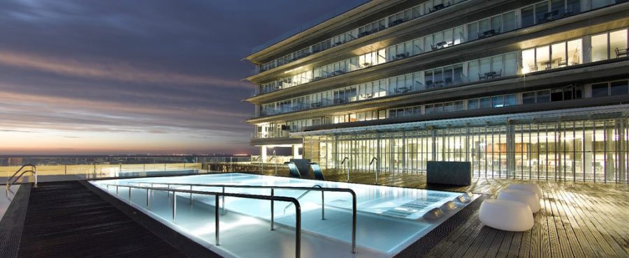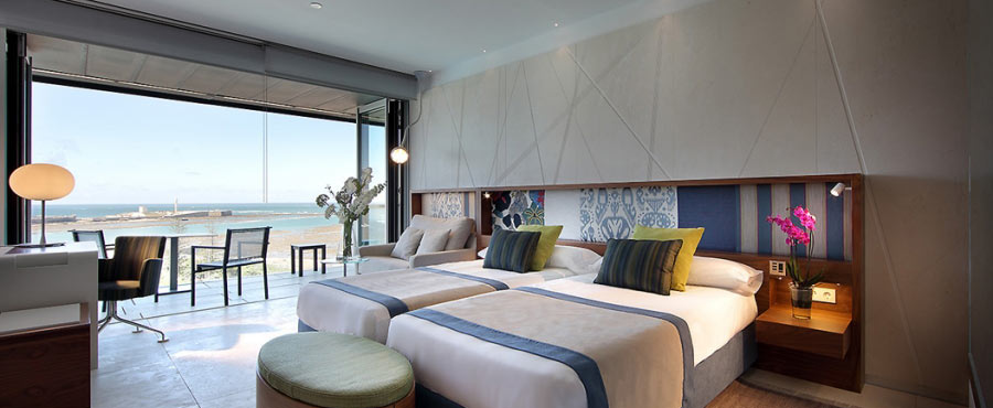 The swimming pool and Spa area is located on the second floor. Here, guests can enjoy the best panoramic views onto the bay of Cádiz.