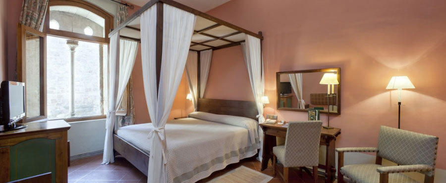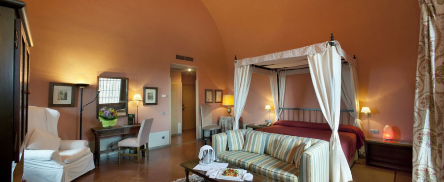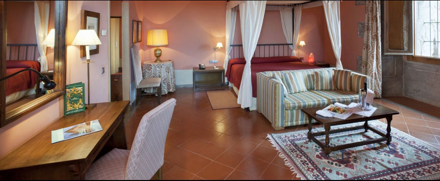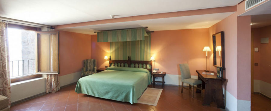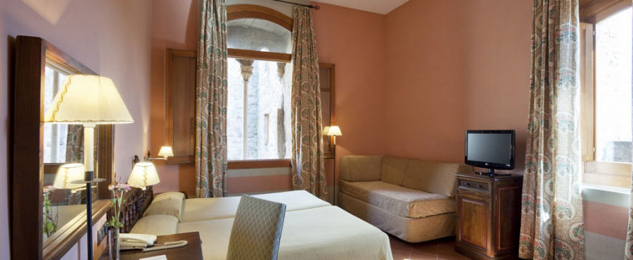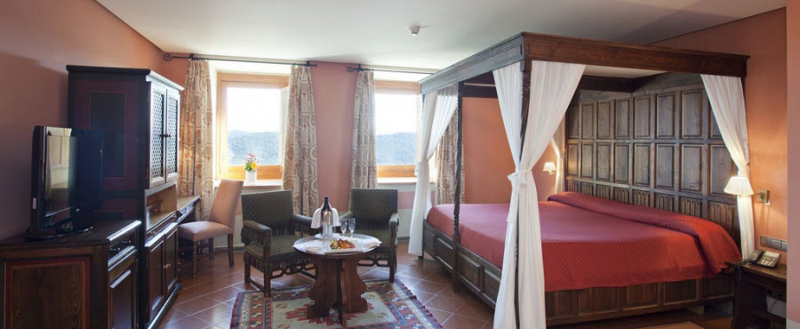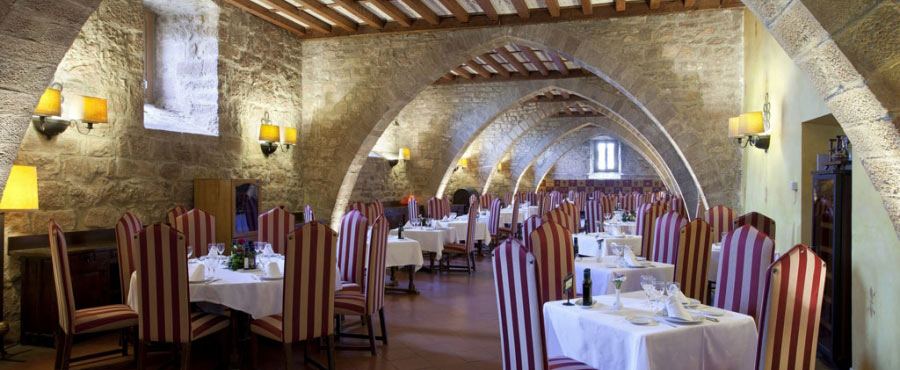 Some of the hotel rooms have charming canopy beds. Pits, towers, walls and gothic features come together with a predominantly comfortable décor and Catalan-inspired mediaeval furnishings.