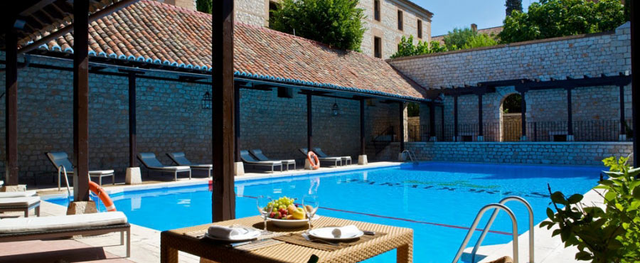 Large windows and vaults, classical Castilian furnishing and the pretty, spacious rooms make up the hotel interior, characterised by a peaceful serene atmosphere. The dining rooms offers garlic soup, suckling pig, roast lamb and typical Madrid stew.