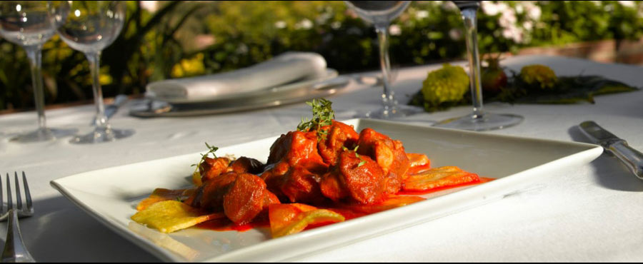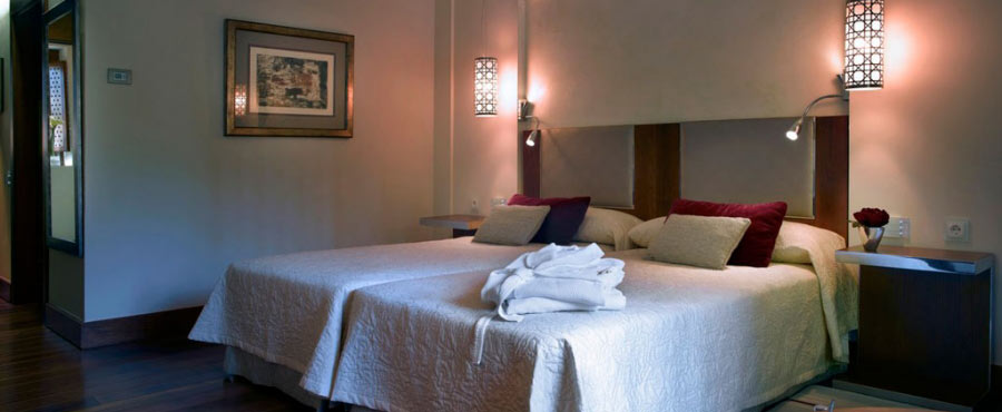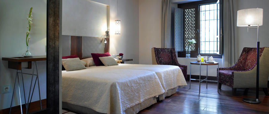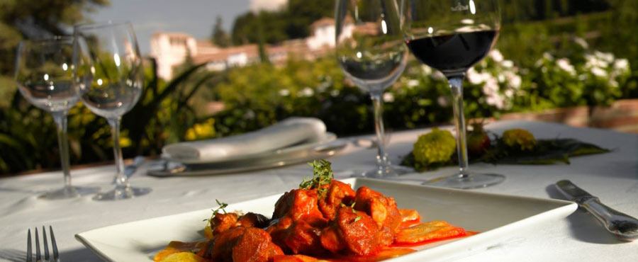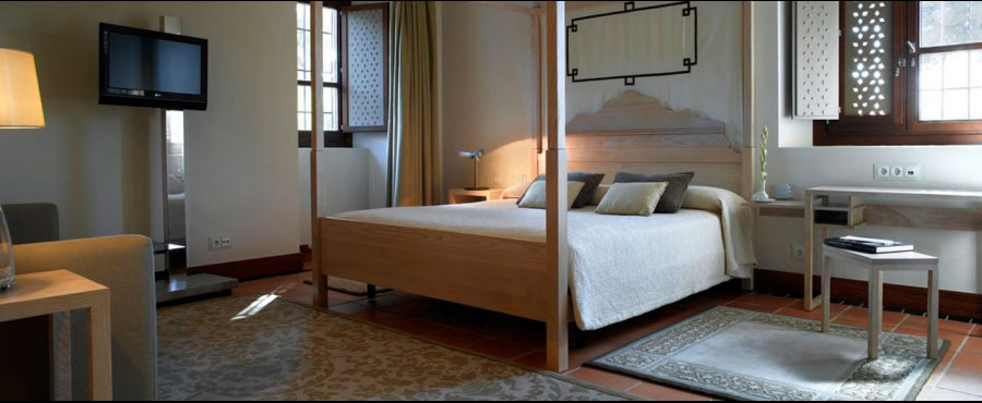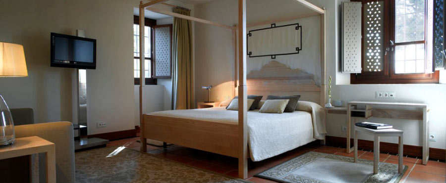 Spend the night in the Alhambra complex, among gardens and fountains that evoke a past in which the Arab and the Christian intermingled. This is the exclusive opportunity offered by the Parador de Granada, a former monastery built on the orders of the Catholic Monarchs on the site of a Nasrid palace, the remains of which have been preserved in the Nazarí Room. The hotel has an enchanting interior, in keeping with the magic exuded by every corner of the city. Works of art and exceptional furniture decorate the cloister and interior rooms. In the dining room and on the cool summer terrace, we offer Andalusian gazpacho, habas a la granadina (fava beans with artichokes) and piononos (sponge cake rolls topped with cream), which are originally from the small local town of Santa Fe. Come experience this idyllic spot, a magical city, a one-of-a-kind experience.