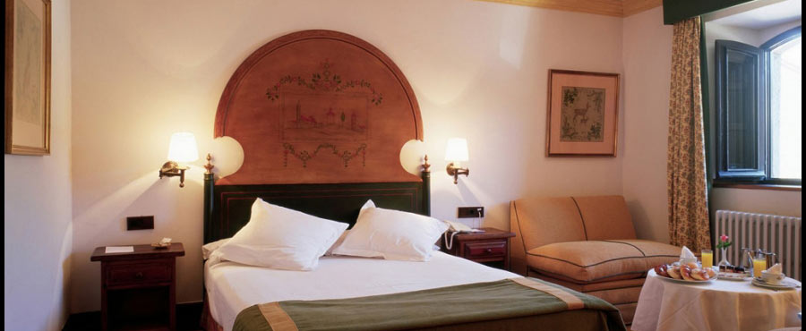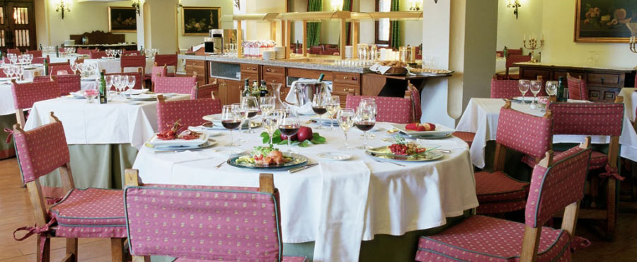 The hotel’s tough stone walls hide an interior with standout comfortable rooms, some with terrace. Classical wood reigns in the dining room, library and lounges. The presence of granite columns and the furnishing provide the space with a traditional Castilian style. The quality of the meat and local vegetables and pulses - such as the famed Barco beans - make for a rich cuisine of roasts and comfort soups and stews.