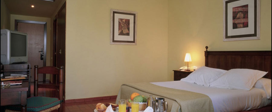 The public spaces and the rooms of the hotel contain wooden furniture, leather chairs and forged wall lights which contribute to the affable and cosy atmosphere. And located in the Rotonda hall, the new Azafrán restaurant offers an attractive buffet with food cooked in front of the customer, where you can enjoy migas del pastor (shepherd’s style breadcrumbs), La Mancha suckling lamb shoulder, cod tiznao and pisto manchego (fried mixed vegetables).