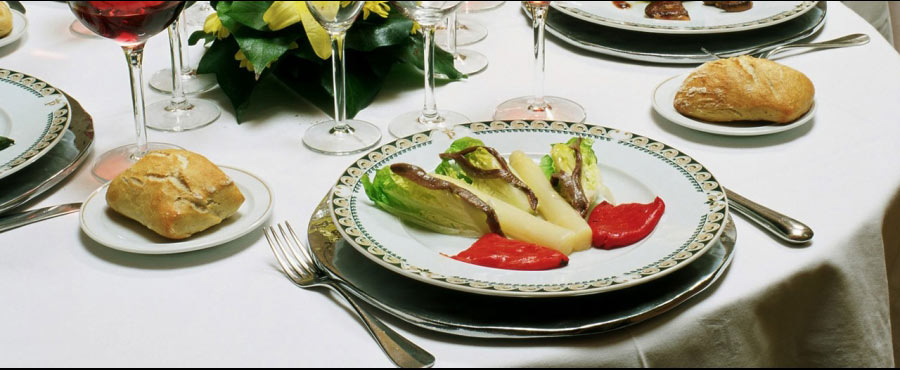 The brick columns and arches in the restaurant area provide an excellent setting to enjoy local produce such as asparagus from Navarre, piquillo peppers, lamb al chilindrón (cooked with tomatoes and peppers) and cod ajoarriero (with garlic and peppers).