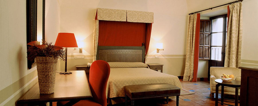 The interior is dominated by lamps, chests and curtains, with large, bright rooms, lounges and work spaces. Game and seasonal produce are features of Oropesa, where the cookery of Toledo offers lamb, roast kid and other specialities such as migas del Arañuelo, a bread-based dish, and confit of partridge.