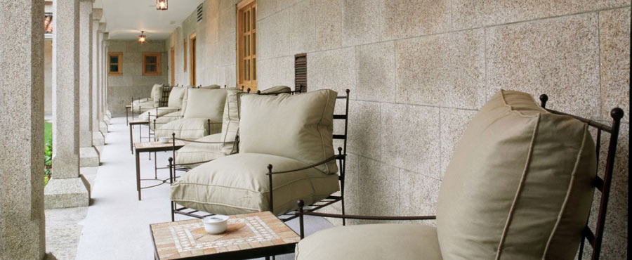 With its granite walls and floors, ceilings, beams and staircases of local chestnut wood, it recreates the typical pazo of the area.