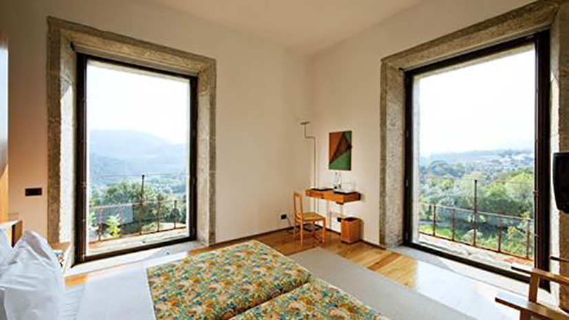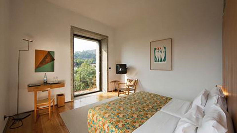The imposing main building of this hotel in Amares is unexpected after the twists and turns of a mountain road, where there are still old ladies with scarves on their head, lambs and goats in the pastures, and a rural and beautiful Portugal. Architecturally sublime, in a Souto Moura project, awarded the Pritzker Prize in 2011 (the greatest architecture award in the world), whereas the stones available were used to build a new space, protecting the notion of the ruins in transformation, which had so much influence over the centuries of history of this space.
